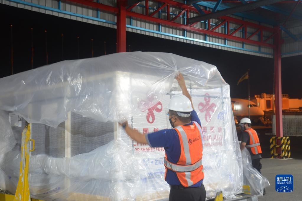 当地时间12日午夜,中国捐赠的第二批新冠疫苗运抵文莱。新华社记者 薛飞 摄