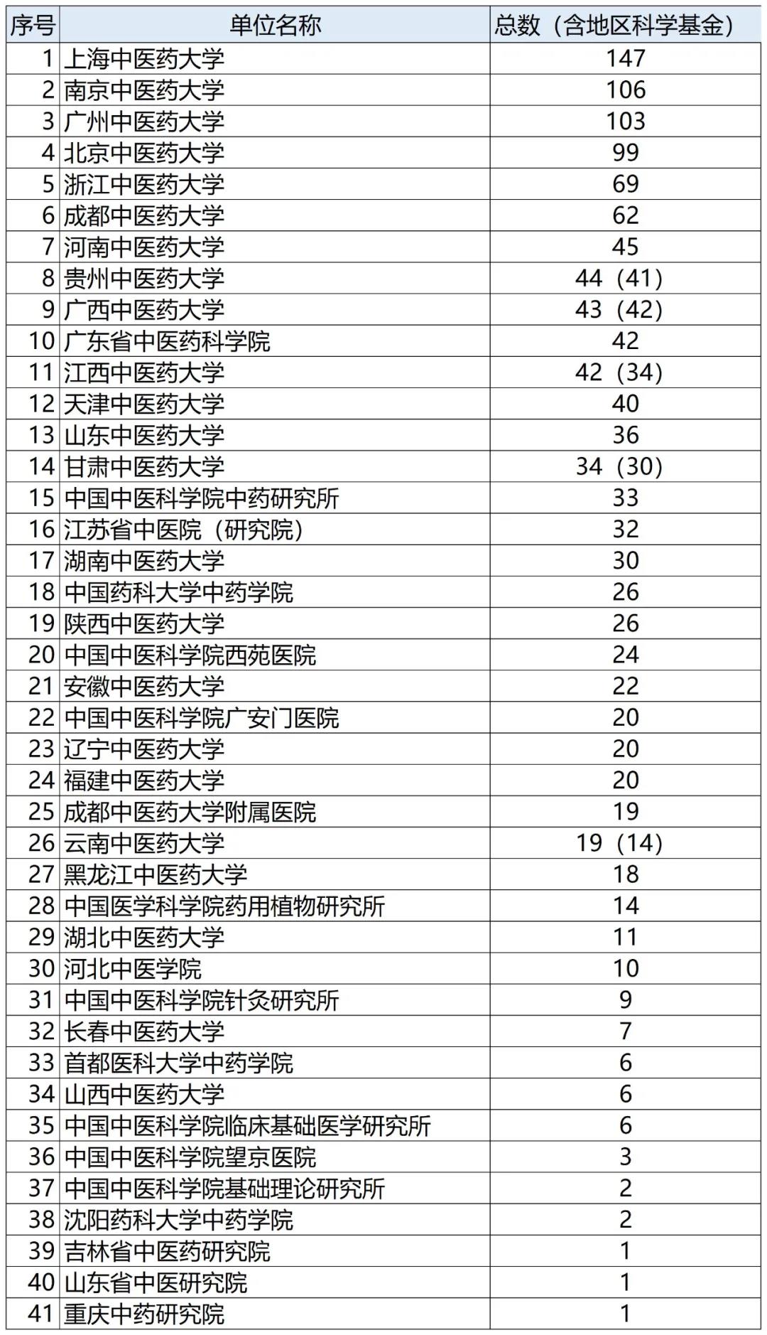 现将部分中医药院校及科研机构的基金获得情况统计如下(不完全统计):