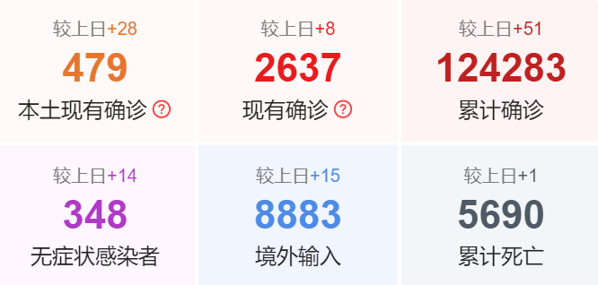 单日新增病例较前一天减少4例,自21日后连续三天超过1700例。当天新增病例中本土感染病例1698例,境外输入病例18例。