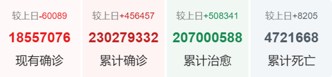 | 美国 | 43,404,877 | 133,620 | 699,748 |