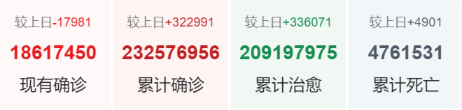 | 国家/地区 | 确诊总数 | 新增确诊 | 死亡总数 |
