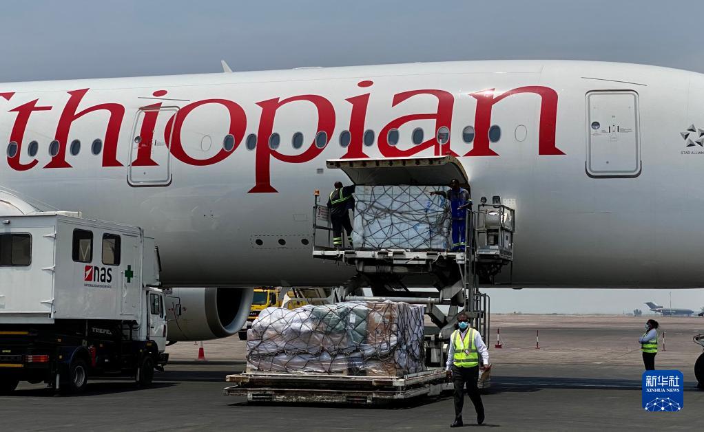 9月29日,在刚果(金)首都金沙萨恩吉利国际机场,工作人员卸载中国援助的科兴新冠疫苗。