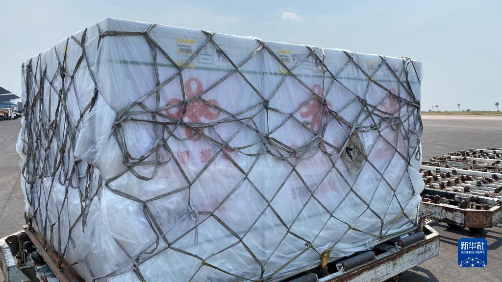 这是9月29日在刚果(金)首都金沙萨恩吉利国际机场拍摄的中国援助的科兴新冠疫苗。