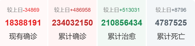 | 巴西 | 21,399,546 | 17,756 | 596,163 |