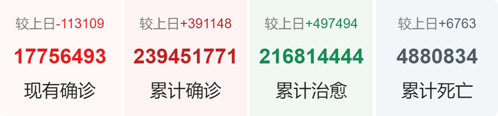 | 国家/地区 | 确诊总数 | 新增确诊 | 死亡总数 |