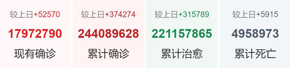 | 美国 | 46,294,210 | 28,824 | 756,205 |