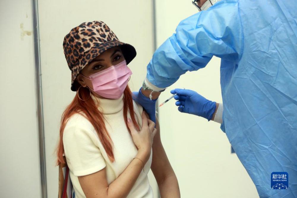 10月23日,在罗马尼亚首都布加勒斯特,医务人员为市民接种新冠疫苗。