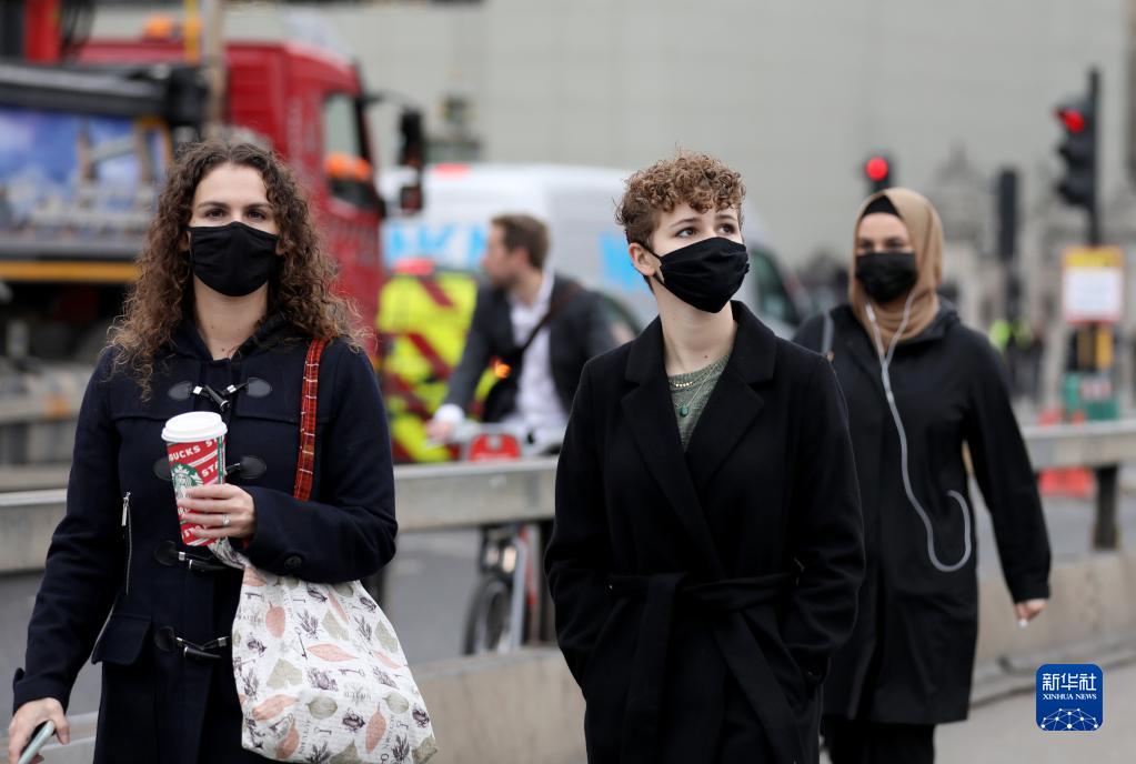 11月24日,人们在英国伦敦佩戴口罩出行。新华社记者 李颖 摄