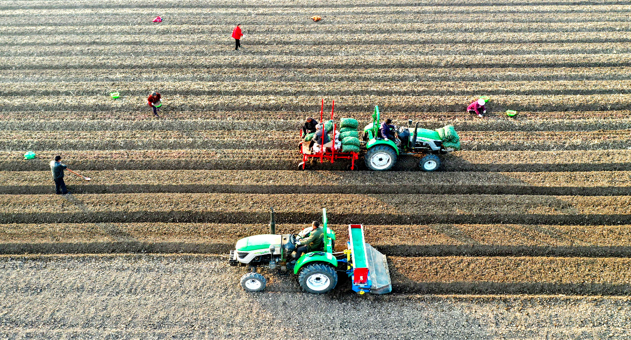 近日,安徽省亳州市谯城区药农抢抓农时,进行中药材白术的种植、施肥、管护等工作,田间一片繁忙景象。图为谯城区十河镇路楼村药农种植白术。刘勤利摄