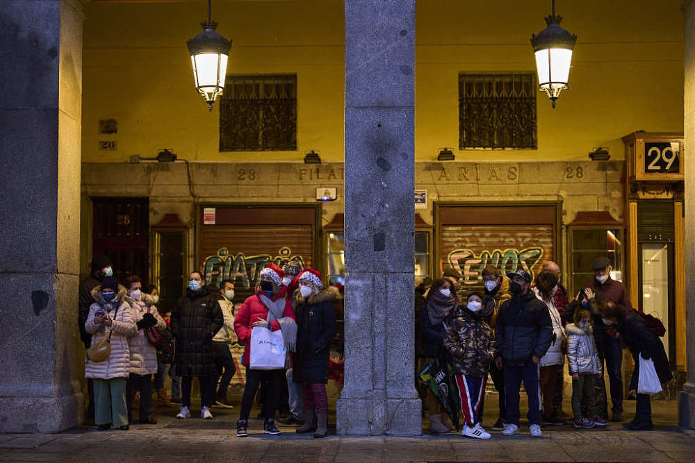 当地时间2021年12月8日,西班牙马德里,新冠疫情下的马德里市中心,许多民众佩戴口罩。
