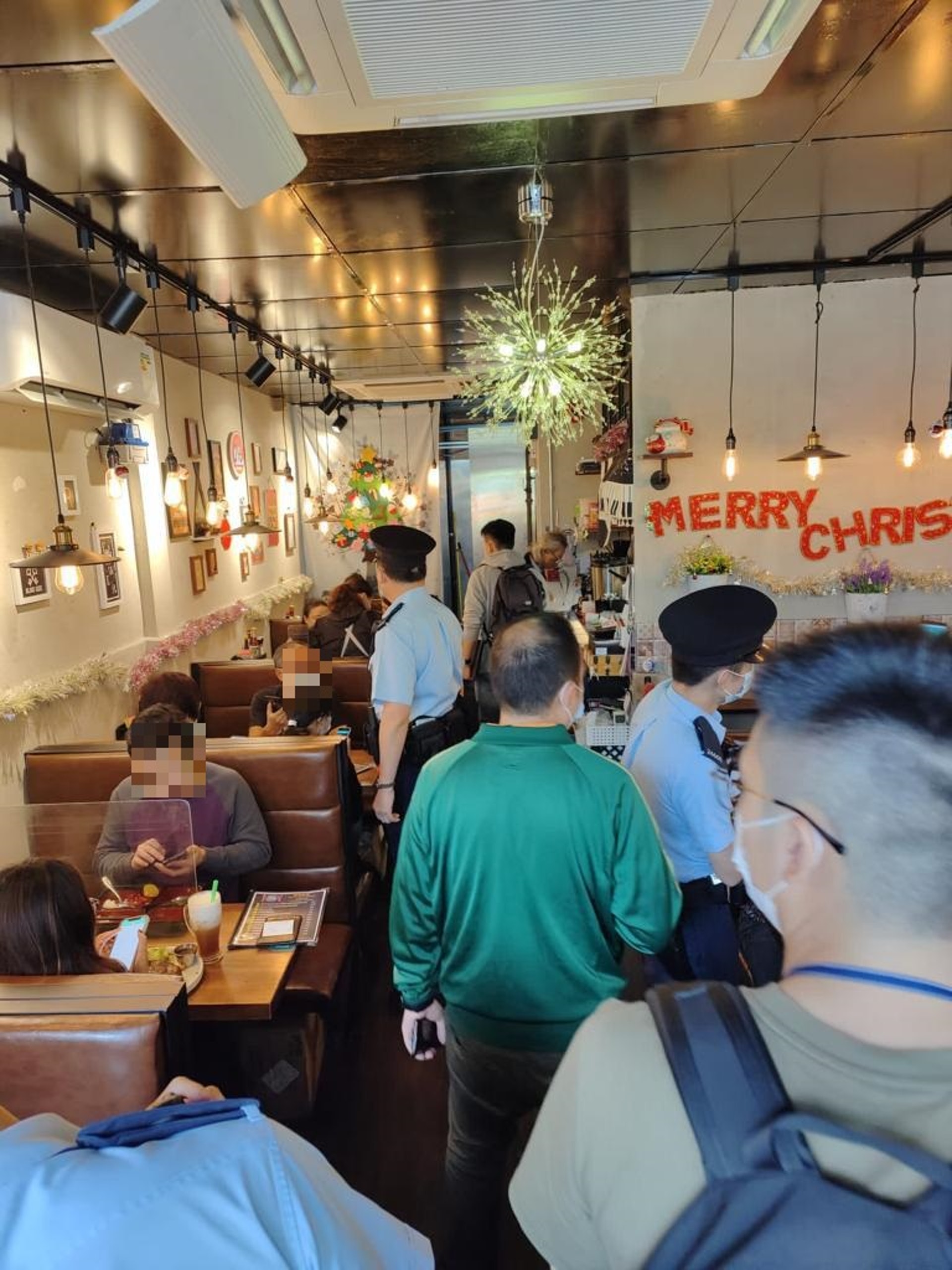 警方葵涌分區,聯同食物及環境衞生署人員,今日(16日)下午突擊巡查區內20間餐廳,以確保有關處所及顧客遵守《預防及控制疾病(規定及指示)(業務及處所)規例》(第599F章)。 行動中,有7間餐廳內的12男9女(年齡介乎19至64歲),未有按照法例規定在進入食肆前掃描「安心出行」二維碼,涉嫌違反第599F章,人員遂向他們發出定額罰款通知書。 有關違規食肆須於翌日起,晚市停業兩周。