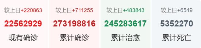 当地时间16日,根据美国约翰斯·霍普金斯大学(JHU)的数据,截至美东时间当天16时21分(北京时间17日5时21分),美国累计新冠肺炎确诊病例达50475878例,累计死亡病例803271例。