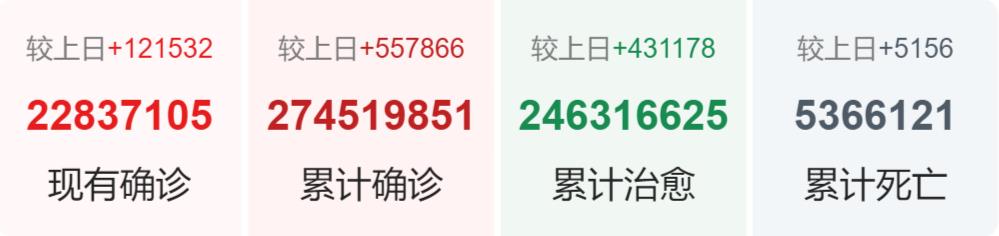 两项数据与24小时前相比,新增确诊病例134013例,新增死亡病例938例。