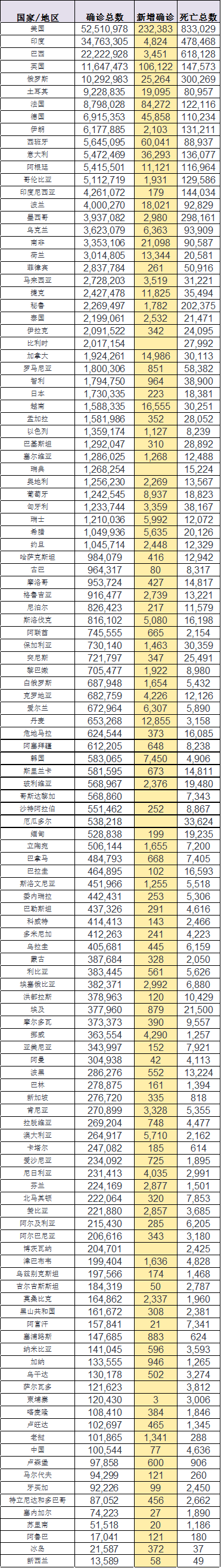 两项数据与24小时前相比,新增确诊病例245250例,新增死亡病例2269例。这是美国日增确诊连续第三天超过20万例。