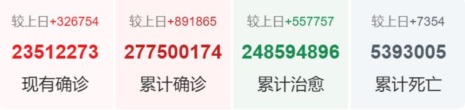 当地时间12月22日,根据美国约翰斯·霍普金斯大学的数据,截至美东时间当天16时21分(北京时间12月23日5时21分),美国累计新冠肺炎确诊病例达51485742例,累计死亡病例811598例。