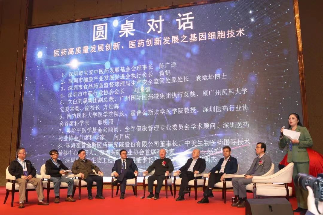 在圆桌论坛环节,徐卫担任主持,邀请陈广源、孙洁、袁斌华、刘玉德、向月应、赵柏松、张明杰以及南方医科大学医学院院长、霍普金斯大学医学院教授、深圳医药行业协会首席科学家邢明照,广东工商联执委、广东博研商学院院长徐晓良等一众大咖就医药高质量发展创新、医药创新发展之基因细胞技术等话题,结合自身经验,展开探讨,带给与会嘉宾思考与启迪。