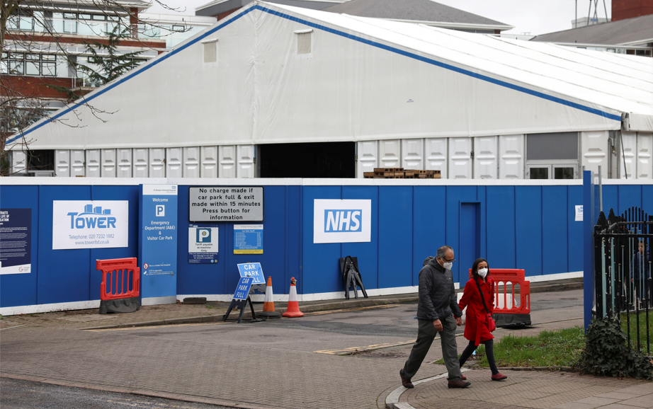 英国伦敦,民众行走经过医院外(资料图)