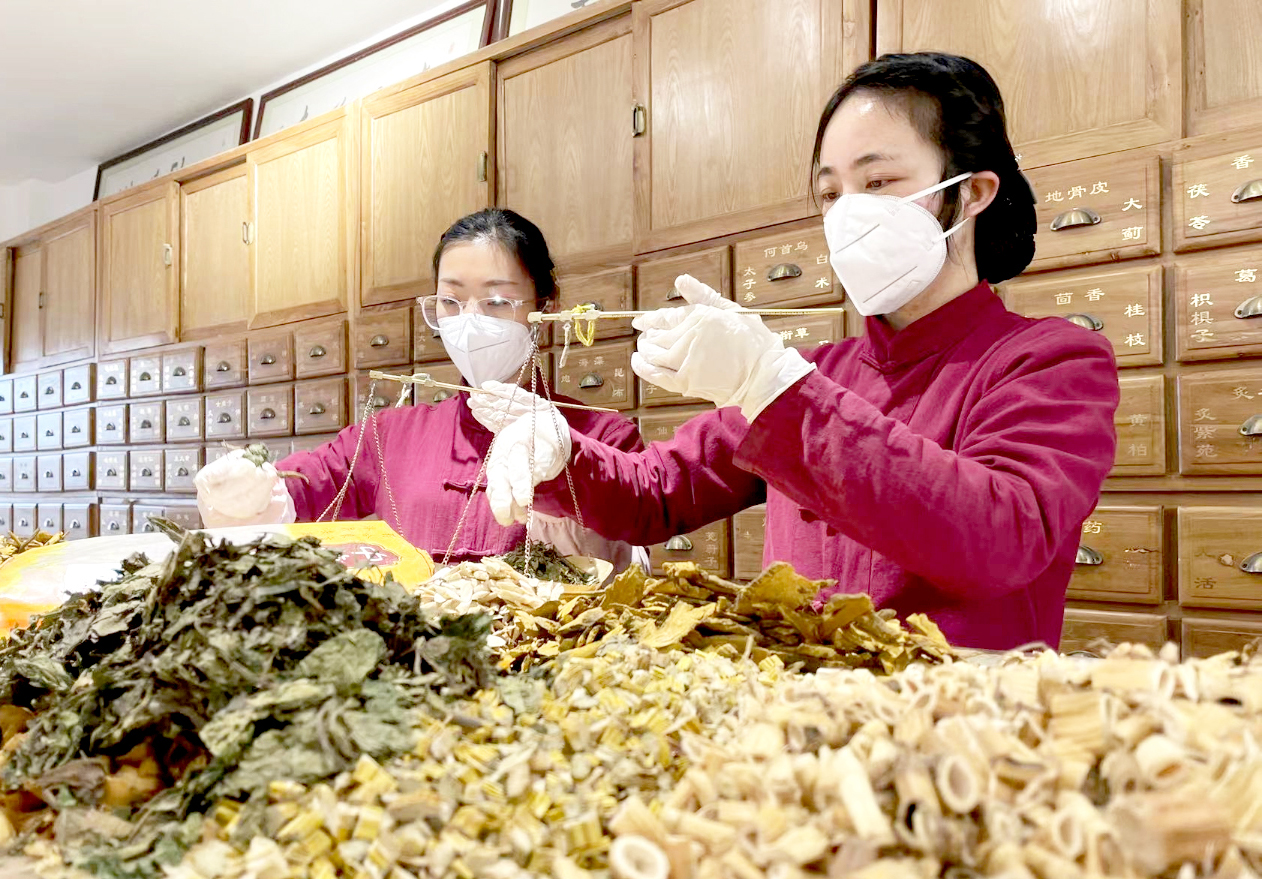 西安姚氏太和医室中医研究所中药师在为清肺排毒汤药方调剂