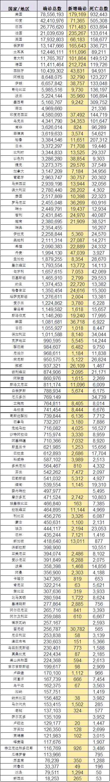 德国疾控机构罗伯特·科赫研究所7日公布的新增确诊人数和新增死亡人数分别为95267人、49人。截至当天,德国累计确诊11117857人、死亡118717人。截至当天,需接受ICU重症监护治疗的患者总数增加25人,达2311人;该国截至目前累计接种1.666亿剂次新冠疫苗,共有6190万人已完全接种,约占该国总人口数的74.4%;已接种加强针的人数达4520万,占总人口的54.3%。