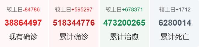 当地时间5月10日,意大利卫生部公布的最新统计数据显示,过去24小时,该国新增新冠肺炎确诊病例56015例,累计确诊16872618例;新增死亡病例158例,累计死亡164731例;新增治愈病例76824例,累计治愈15624915例;现存确诊病例1082972例。