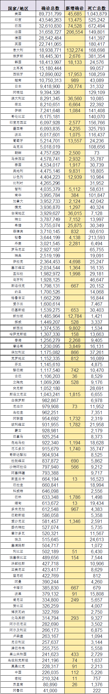 根据当天发布的官方数据,法国5日单日新增确诊病例206554例,创下3个多月以来单日新增确诊病例新高;法国单日平均新增确诊病例回升至12万例,与前一周相比增长50%。