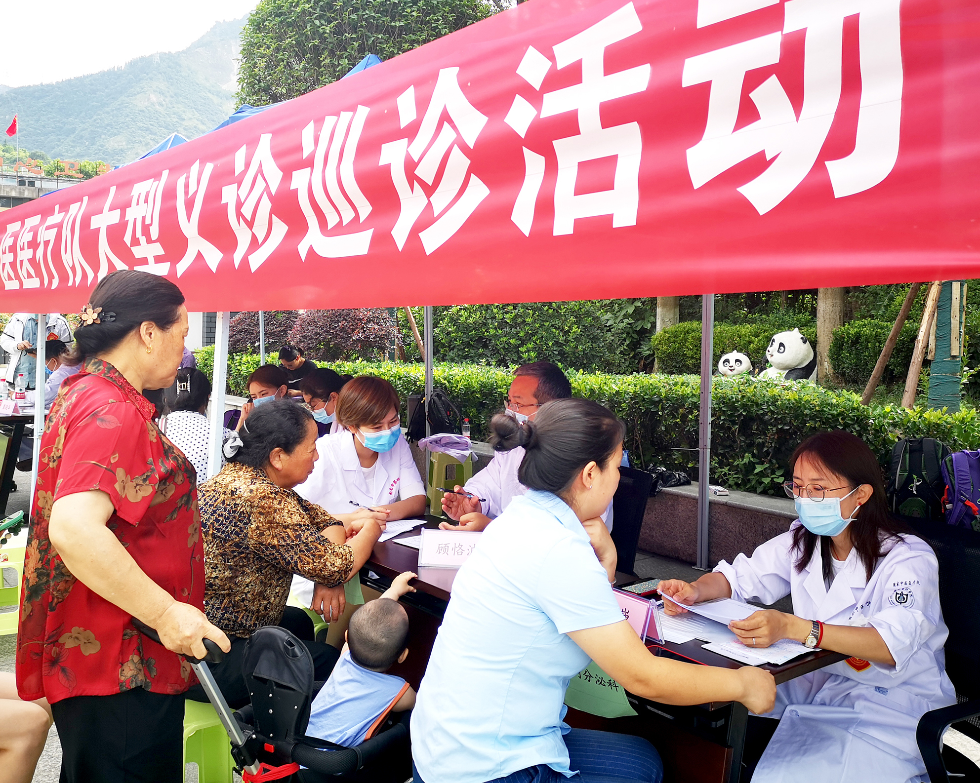 医疗队在汶川县映秀广场义诊。