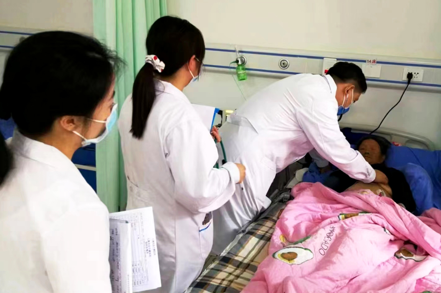 刘玥在九寨沟县中藏医院病房为心衰患者查体。