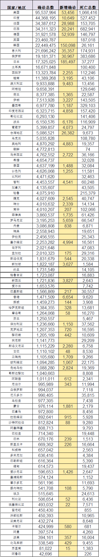 根据美国约翰斯·霍普金斯大学的统计数据,截至北京时间23日6时20分,美国新冠累计确诊病例超过9361.6万例,累计死亡病例超过104万例。