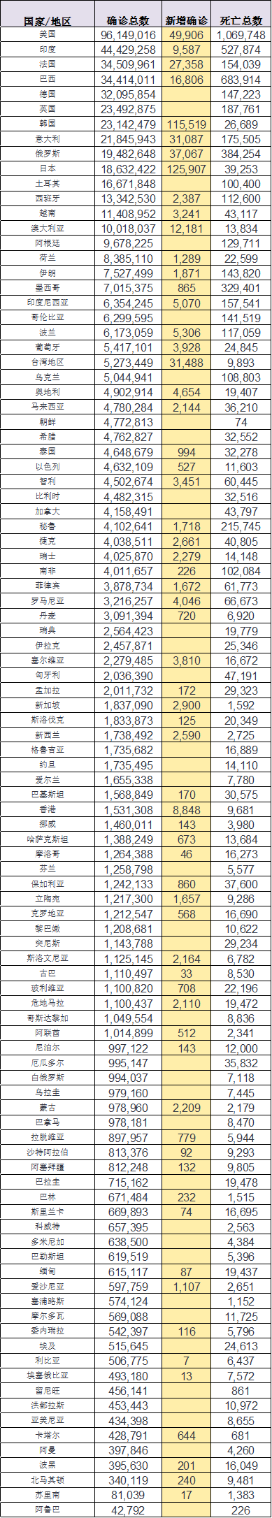当地时间8月29日,根据美国约翰斯·霍普金斯大学(JHU)数据,截至美东时间当天17时20分(北京时间8月30日凌晨5时20分),美国新冠肺炎确诊病例累计达94264482例,累计死亡1044282例。