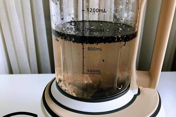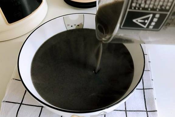 7、将做好的黑芝麻糊可以倒出来了,如图所示。