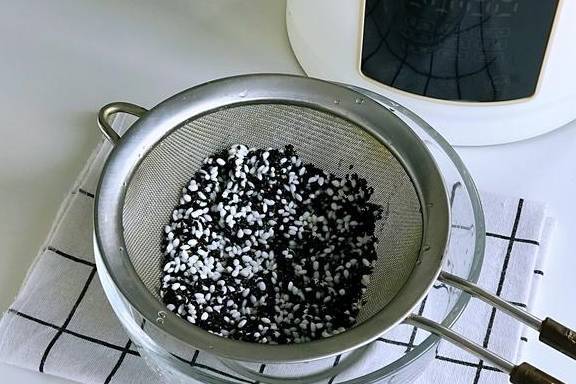 1、首先我们先将所需的食材准备好,超级简单的食材,只需糯米和黑芝麻即可,如图所示。2、将糯米和黑芝麻混合清洗干净,因为黑芝麻颗粒太小,所以最好用滤网勺来进行清洗,边用水冲洗边滤出水分,如图所示。
