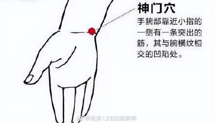 操作方法:操作时先将指甲减掉,用拇指指腹或者指尖点压揉按穴位1-2分钟,以酸胀感为度。 百会:两耳尖连线中点处神门:位于腕部,腕掌侧横纹尺侧端,尺侧腕屈肌腱的桡侧凹陷处 太冲:足背部,第1、2跖骨结合部之前凹陷处 (via北京大学首钢医院)