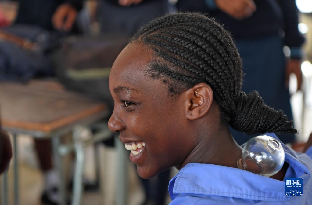 4月3日,在纳米比亚温得和克的伊曼纽尔·谢菲迪中学课堂上,一名学生体验拔火罐。新华社发(穆萨·卡萨克摄)