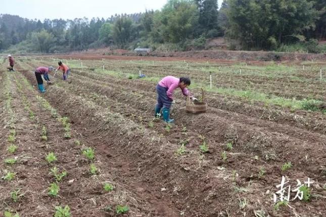今年3月,九陂镇与广东岭南职业技术学院乡村振兴教育学院达成合作,启动溪黄草新型种植试点项目,引进第三方经营企业,制定了“公司+学院+合作社+农户”的经营模式,由广东省职教城提供基础设施建设资金,公司提供优良溪黄草种苗并保证收成回购,学院提供技术指导,合作社通过土地流转的方式承包50亩土地,聘请当地农民按日薪制进行试点种植,改变农民“单兵作战”“看天吃饭”的旧模式,形成“风险共担、利益共享”的共同体,引领广大农民“抱团”致富。