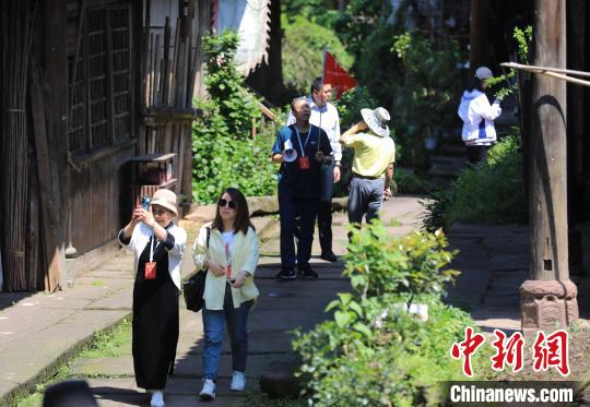 海外华文媒体参访团行走在望鱼古镇。 王磊 摄
