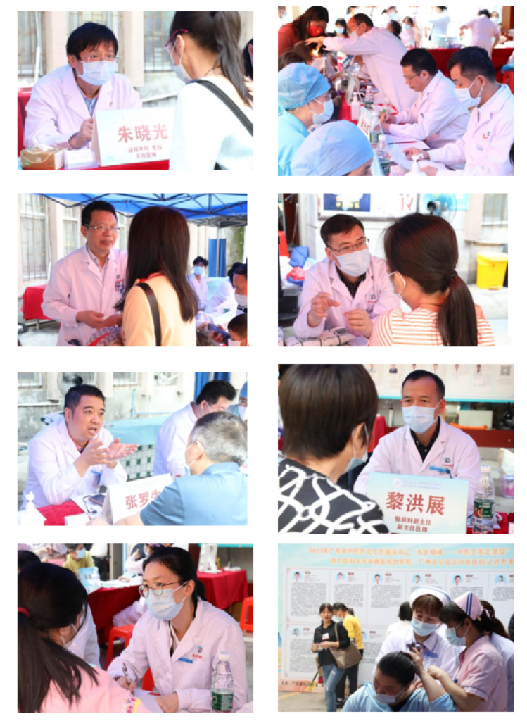 上午9时,在从化区中医医院门诊大楼前,南方医科大学中西医结合医院联合从化区中医院举行大型义诊活动,神经外科、泌尿外科、风湿病科、血液肿瘤科、耳鼻咽喉科、甲乳血管外科/肛肠科、心血管科、肿瘤一科/放疗科、妇科、皮肤科、脑病科、骨伤科、中医特色护理科、治未病科共15名中西医专家为群众零距离提供健康问诊,并为市民提供耳穴刮痧、艾灸等中医特色护理服务和免费测血糖血压等服务。