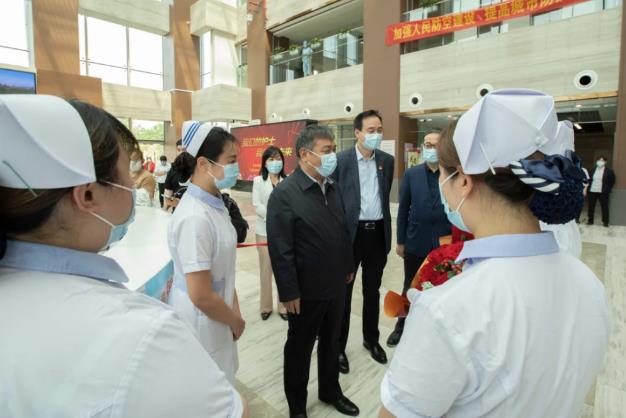 在与广大护理人员交谈中,闫树江对过去三年医院在疫情防控工作上所作出的成绩给予了充分肯定。他指出,广大医务工作者始终坚持人民至上,生命至上,舍小家顾大家,白衣执甲,逆行出征,为打赢疫情防控持久战阻击战、为守护人民的生命健康作出了重要贡献,用实际行动践行了“敬佑生命、救死扶伤、甘于奉献、大爱无疆”的崇高精神。希望广大医护工作者以习近平新时代中国特色社会主义思想为指导,继续传承和弘扬南丁格尔精神,践行初心使命,砥砺奋进担当,以更加精湛的技术、更加优质的服务为患者保驾护航,促进医院可持续高质量发展。