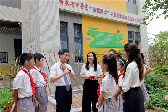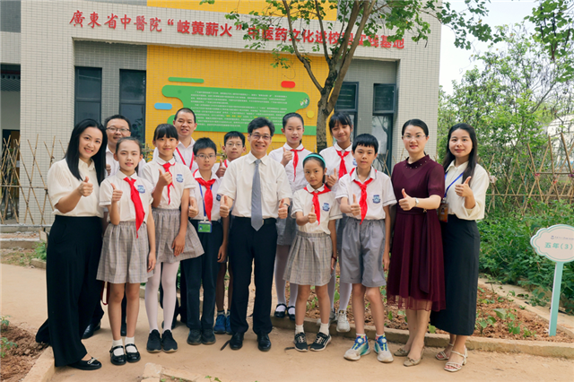 ▲华南师范大学附属广州大学城小学“岐黄薪火”中医药文化进校园等6个实践基地揭牌