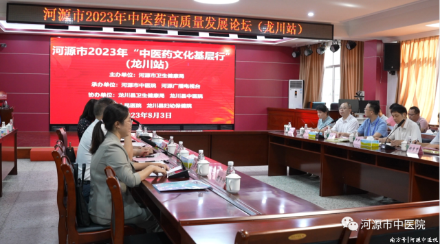 其中,河源市中医药高质量发展论坛(龙川站)在龙川县中医院顺利举行。市卫生健康局副局长叶树知、四级调研员郑衍华,龙川县卫生健康局局长郑荣辉,市中医院院长王步云、副院长黎惠金,龙川县中医院院长黄国栋,龙川县人民医院院长吴伟江,龙川县妇幼保健院院长包志城以及各乡镇卫生院院长等40余人参加。论坛由市卫生健康局中医药管理局副局长钟兰芳主持。