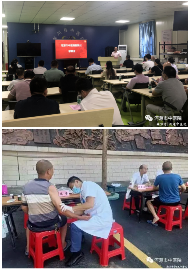 在龙川县中医院示教室、龙川县人民医院会议室、龙川县中医院住院楼门前,还同步开展了学术交流、中医适宜技术培训及大型义诊活动。本次学术交流会有近百人参加,学术氛围浓厚;义诊现场,各位专家耐心解答群众的健康咨询,并给予合理的治疗方案和健康宣教,接受义诊群众近50人次,方便了当地群众就医,提高了当地群众的健康意识,获得了前来咨询和问诊群众的高度认可和欢迎。