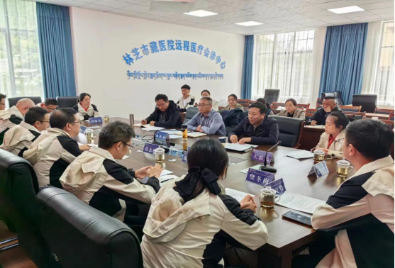 ▲国家中医医疗队与林芝市藏医院举行座谈会