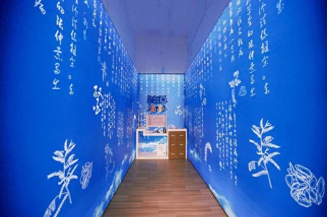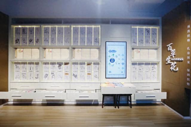 70多平方米的中医药文化展示区,小巧而精致,整体采用中国水墨画的颜色,墙壁上装点着各朝代的书法,装潢和设计中国风浓郁。“展区利用智能化技术、互动式理念,开设了八段锦跟练、中药扎染、中药香囊制作、中药展示等专区,让人们在亲身体验中爱上中医文化。”董虹介绍。