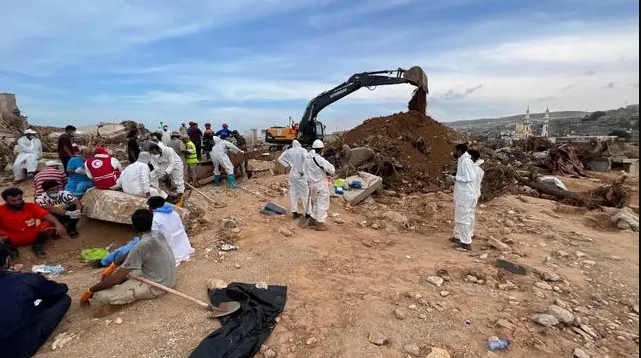 9月17日,救援人员在利比亚德尔纳的受灾地区工作。新华社发(哈姆扎·图尔基亚摄)