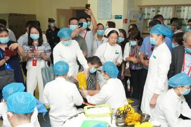 随后,参访团来到佛山市中医院本部,先后参观了党建文化阵地、骨伤科门诊、治未病中心、中医护理门诊等地。在骨伤科门诊,参访团对佛山市中医院特色的夹板包扎技术颇感兴趣,踊跃与讲解员互动,并拍照记录。