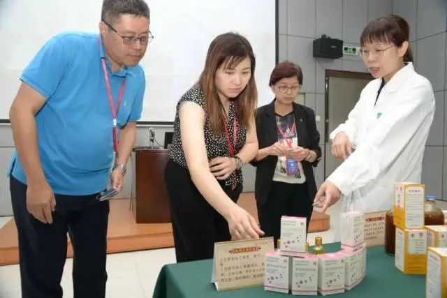 参访团首先到佛山市中医院制剂中心,了解发展历程、厂区规模和生产状况。在展示厅,各种本院中医特色制剂吸引了嘉宾们的目光。尤其是刚刚入围广东省“岭南名方”孵育品种的伤科黄水,以及获评“岭南名方”入围品种的陈渭良伤科油和骨补丸,更是让嘉宾们饶有兴致地通过嗅闻、涂抹等方式进行亲身感受。