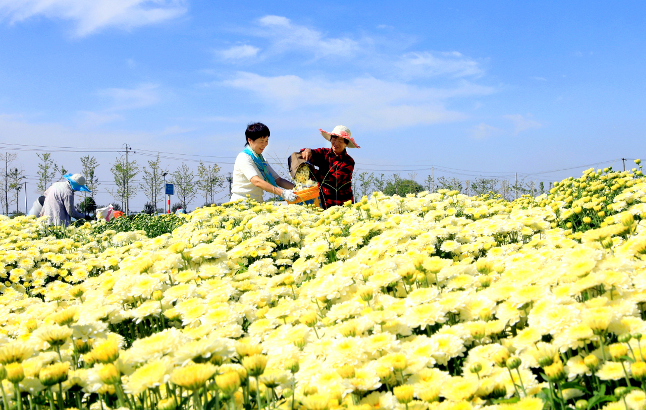 近日,在安徽省淮北市相山区渠沟镇鲁楼村菊花种植地,2000余亩的北京菊、婺源皇菊、香菊、苏北菊等6个品种的菊花正进入采摘期。