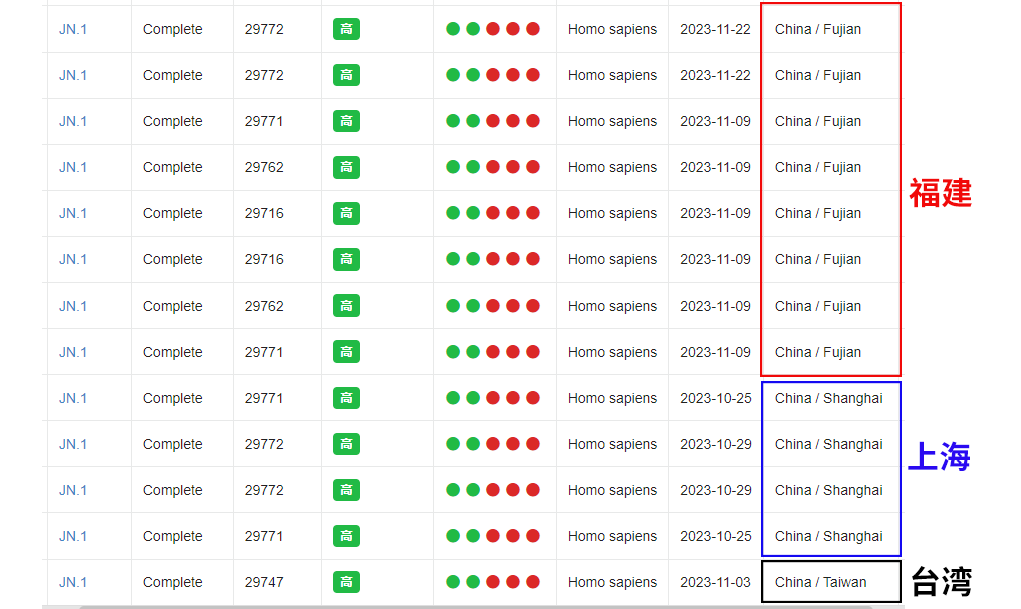 健康时报根据国家生物信息中心数据查询,今年10月、11月JN.1在上海、福建、中国台湾报告的病例中检出。①