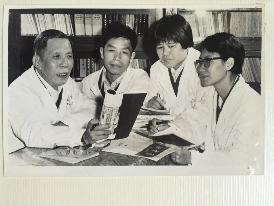 罗元恺教授(左一)、黄耀燊教授(左二)、邓铁涛教授(左三)