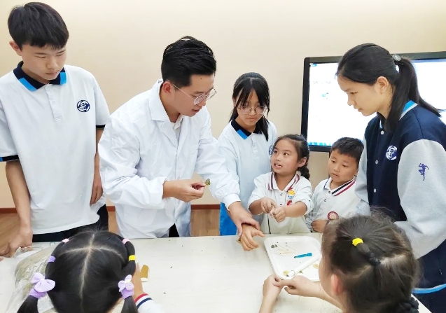 几年来,博硕士服务团每周走进北辰区的南仓中学、金艺小学等学校,累计达百余次。他们围绕《山楂丸制作》《养肝明目防近视》《屠呦呦与青蒿素》等主题开展中医药文化宣讲,让同学们既学习了中医药文化,又学习了科学家精神。北辰区师生还走进天津中医药大学参加“研岐黄校园弘中华国粹”研学活动,博硕士服务团志愿者们担任药山讲解员、中医脉诊仪讲解员、经络腧穴虚拟仿真仪器讲解员、校园景观文化讲解员等,带领学生感受中医药文化的博大精深。