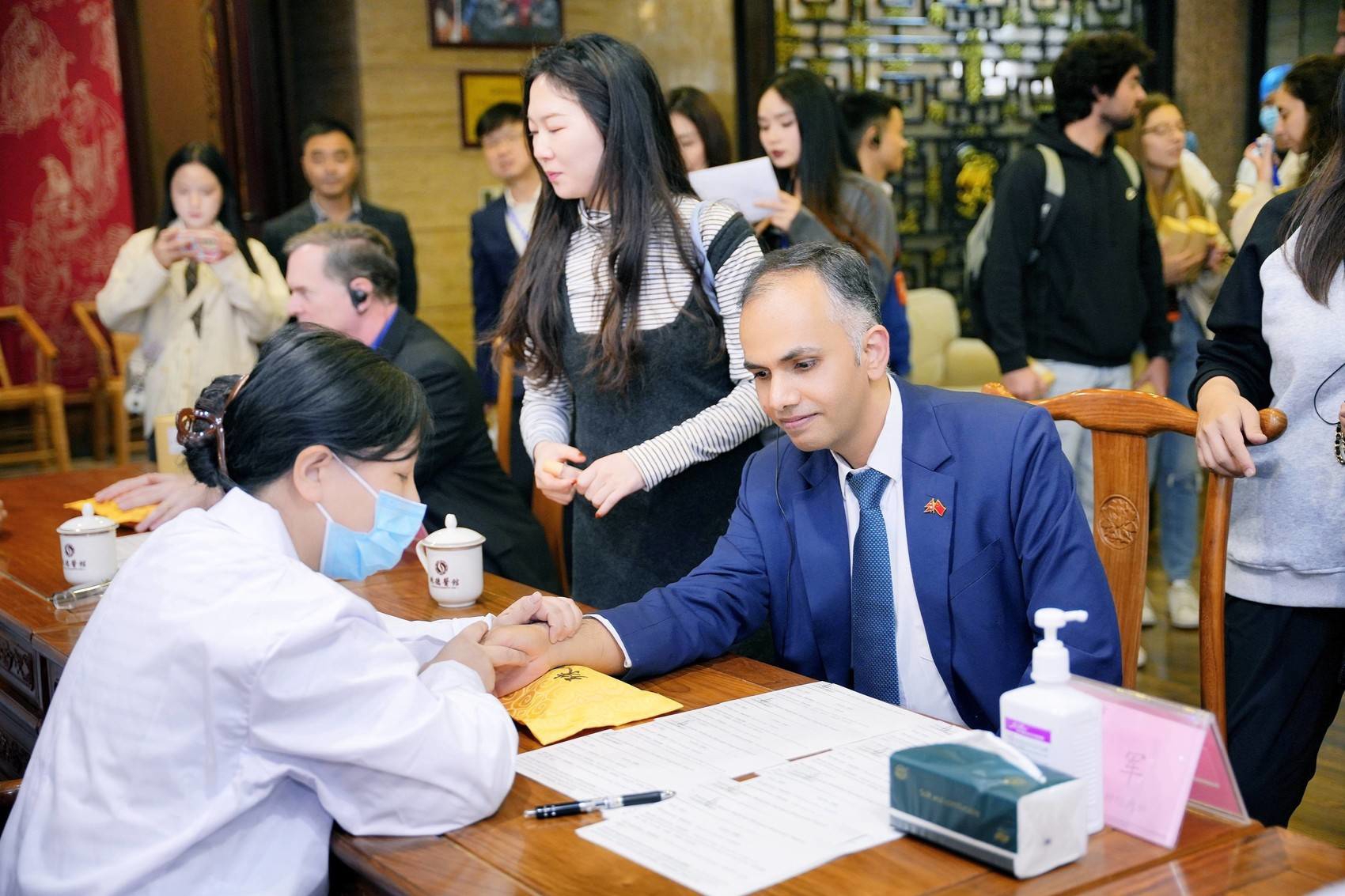 驻蓉外国领事官员正在体验中医药文化。省中医药局供图